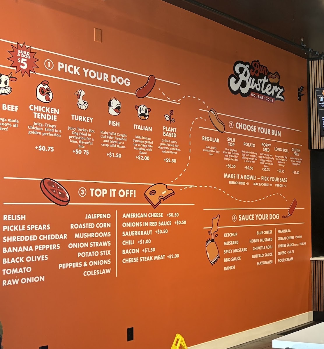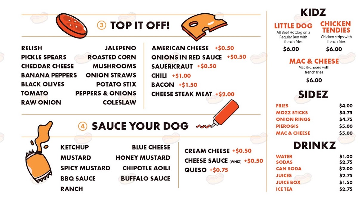 Build your perfect dog and create your masterpiece! Choose from a list of different buns, meats, toppings, and sauces—the customization combos are endless.